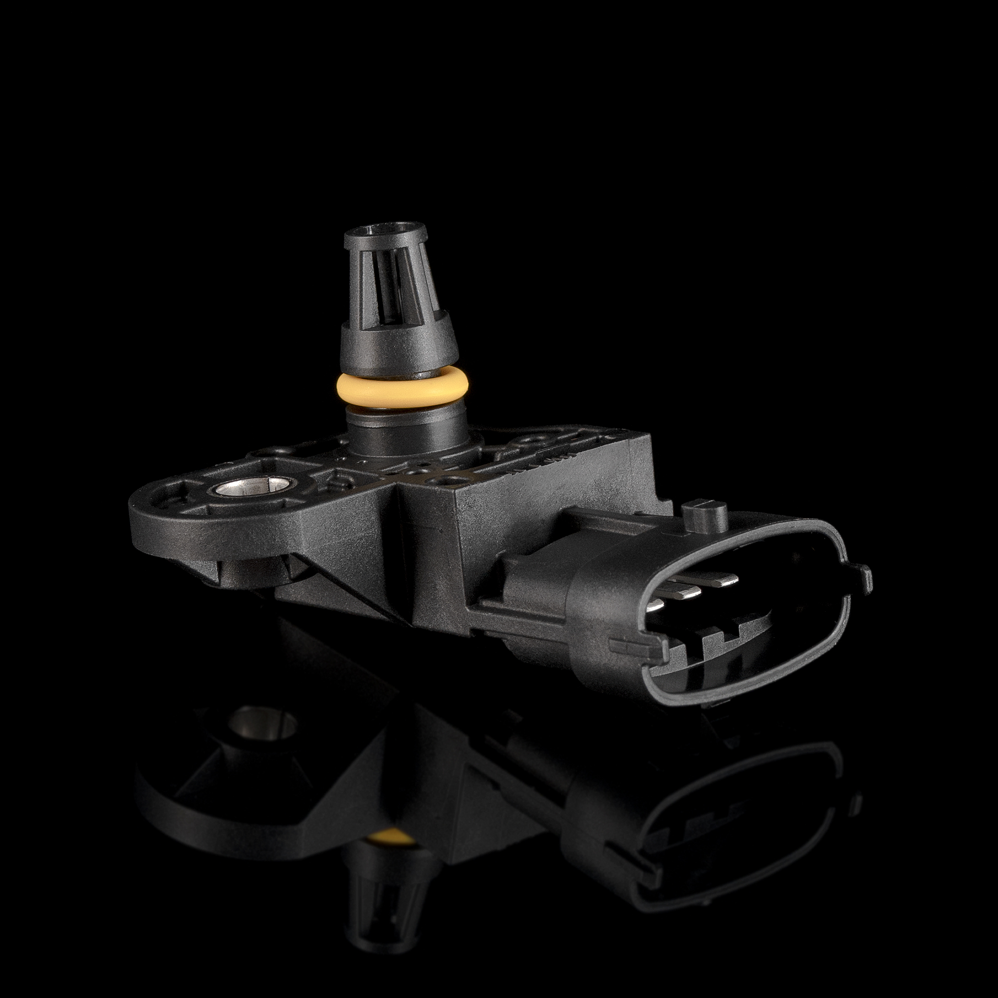 В конструкции датчика давления воздуха присутствует 2 камеры – атмосферная, связанная со впускным коллектором, и вакуумная. Там же расположены 4 тензорезистора, прикрепленных к диафрагме, и электронный чип. Давление воздуха действует на диафрагму, и она перемещает тензорезисторы, которые в зависимости от положения меняют сопротивление, что в итоге влияет на величину импульса от чипа к блоку управления.